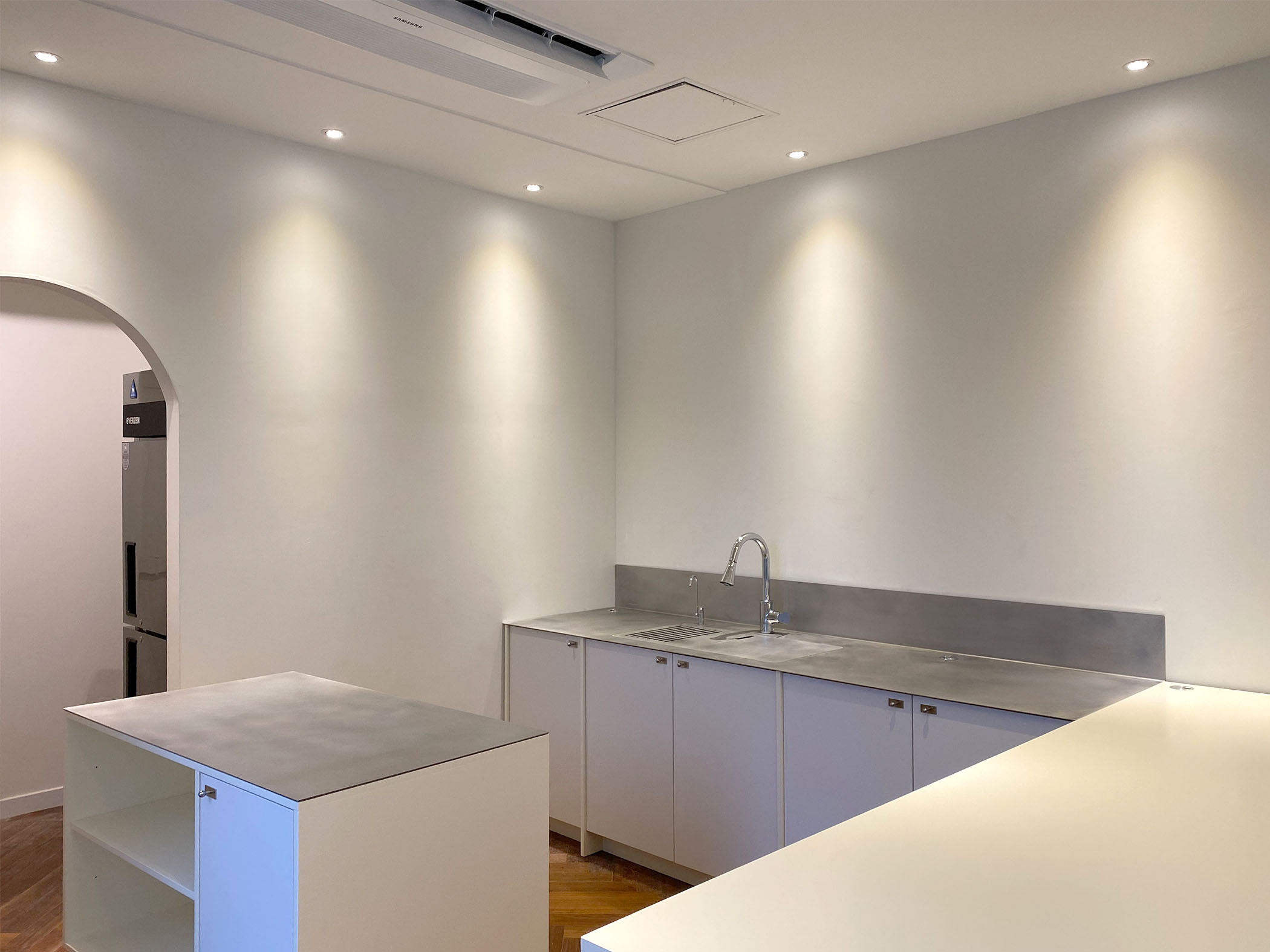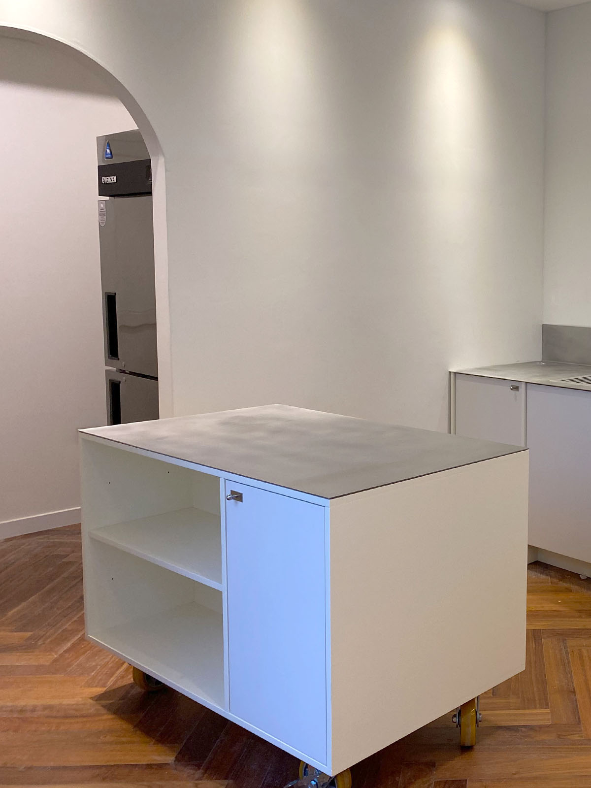스티키베이비 쇼룸을 위해 제작한 가구는 단순한 싱크와 작업대를 넘어, ‘젤리’만큼 다채로운 역할을 수행합니다. 젤리를 만드는 주방으로서의 기능은 기본, 동시에 수업과 고객 응대가 이루어지는 무대이기도 하죠. 중앙 작업대에는 바퀴를 달아 필요에 따라 밀고, 돌리고, 재배치할 수 있도록 했습니다.또한 언더싱크로 매입된 싱크볼에는 딱 맞는 덮개를 더했습니다. 필요할 때는 작업대를 확장하는 보조 공간으로, 때로는 젤리틀이 반짝이며 말라가는 건조대로 변신하기도 합니다.